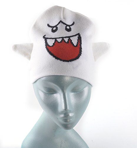 Boo Nintendo Super Mario Brothers Beanie Hat Boo! Beanie makes a great gift for all lovers of Nintendo's awesome Super Mario games series Super Mario knitted ghost beanie features cute ghost face and knitted 'arms' Boo! Ghosts appear in all of the Super Mario versions - they may be enemies but they're pretty cute Knitted beanie is 100% acrylic & fits most large kids or adult heads