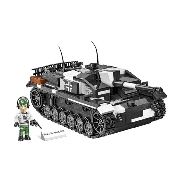 COBI -2286 STUG III Ausf. F/8 & Flame Tank (2-in-1) Historical Collection - WW II 548 Elements 1 Figure Age Group 8+ Scale 1:35 What do you like to build most? The most popular German storm gun StuG III or the fearsome flame thrower? It's your choice! We provide the building blocks and building instructions (English language not guaranteed). The block model of the StuG III and the flame tank was developed in a scale of 1:35 to match the figures from 548 elements. The model is approx. 21 cm long and the colours refer to activities in winter. The model has a service flap with block motor. Thanks to the working chain traction, you can move the model. The set uses high quality, durable prints. The set includes an attractive figure of a storm cannon crew member, a name plate and the bricks required to build the selected version of the vehicle! The set offers an exciting construction and perfectly complements the collection of World War II vehicles in 1:35 scale. This is another proof of the possibilities of high-quality block modelling. Build history, stone by stone! STUG III (Sturmgeschütz III) was a German tank destroyer used in World War II. Based on the chassis of the PzKpfw III tank, this attack vehicle was equipped with a solid body with a 75 mm gun. The main task of the STUG III was to support the infantry and fight enemy targets such as barricades and armored vehicles. The flame tank was very similar to the STUG III. However, it has been adapted for carrying out fire inserts with a strong flamethrower. The flame tank is equipped with a special tank for liquid fire mixture. The mixture was injected through a tube and produced a jet of fire with a range of several dozen meters. The main task of the flame tank was to fight fortifications, destroy buildings and destroy infantry. 548 high-quality elements, made in the EU by a company with over 35 years of tradition that meet safety standards for children's products, fully compatible with clamping blocks from other brands, only permanent prints without the use of stickers have been used. Clear and intuitive instructions based on drawings and symbols, 1 figure, sign with the name of the set, additional blocks scale 1:35, model dimensions (L x W x H): 20.5 cm (8.07 inches) x 8.4 cm (3.35 inches) x 9 cm (3.54 inches) Safety Warning Danger of suffocation due to small parts that can be swallowed