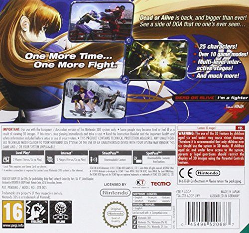 The newest instalment to the world-renowned fighting game franchise, Dead Or Alive: Dimensions makes its way onto the Nintendo 3DS. Dead Or Alive: Dimensions is the latest chapter in the Dead or Alive series of 3D fighting games. It is a strategic fighting game where a range of characters battle in 3D arenas, using a mix of fighting moves. This is the first time that a Dead Or Alive fighting game has been available on a portable system, and also first time on a Nintendo platform.