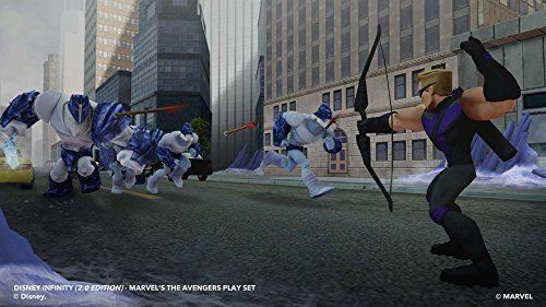 Disney Infinity 2.0 Marvel Superheroes Hawkeye Character Figure is part of the Avengers Play Set designed for the upcoming Disney Infinity 2.0: Marvel Super Heroes video game. The Hawkeye figure has a sculpted angular design seen in previous DI toys. He is wearing cool purple sunglasses and his hair is swept back. Hawkeye wears a black and purple suit, and black gloves and boots. He is posed holding a large bow, and reaching for an arrow from his back, ready to shoot. The base of the figure is decorated to look like broken concrete. On the bottom of a base is a transparent circle, that sits on the Infinity Base. Place Hawkeye on the base, and he will appear in the video game. Hawkeye can be used in Toy Box mode, along with any of the other figures from Disney Infinity 1.0 and 2.0. He can only be played in the Avengers Play Set, since he belongs to that Universe. The Avengers Play Set is set in Marvel Manhattan. This is a massive environment, 4 times the size of the Incredibles Play Set. Collect this Disney Infinity Figure for bonus experience points and health to give your character an extra edge in the game.