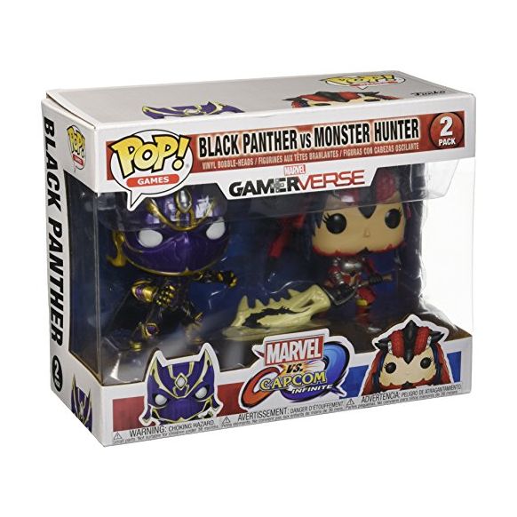 The crossover video game series Marvel vs. Capcom: Infinite has one more 2-pack to add to our previously announced Pop! lineup! Now adding the King of Valkanda, Black Panther, featured with his right-hand and expert tracker, Monster Hunter! Coming this Winter!In this Black Panther vs Monster Hunter Pop! Vinyl Figure 2-Pack, each figure stands around 9cm tall.Packed in an illustrated window box.