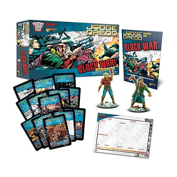 Each player builds their own block with unique characteristics, gathers their residents together, and then unleashes them on the self-satisfied citizens of a neighbouring block – who have had everything their own way for far too long! Included are new rules for use in the Judge Dredd Miniatures Game; new characters and units, new Armoury cards to add to your deck, and a brand-new Block War deck that brings the sheer violence and chaos of a block war to the tabletop – along with a lot of Judges!