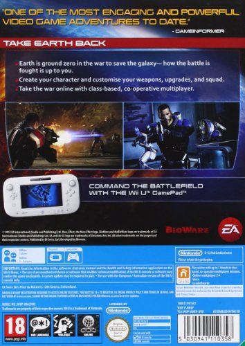 Please note WiiU titles are not compatible with the standard Nintendo Wii Not everyone will survive. An ancient alien race, known only as "Reapers", has launched an all-out invasion leaving nothing but a trail of destruction in their wake. Earth has been taken, the galaxy is on the verge of total annihilation, and you are the only one who can stop them. The price of failure is extinction. You are Commander Shepard, a character that you can forge in your own image. You determine how events will play out, which planets to explore, and whom to form alliances with as you rally a force to eliminate the Reaper threat once and for all. How you wage this war is completely up to you: go into combat with guns blazing or use cover to plan a more tactical assault. Utilize your squad to full effect or take a lone wolf approach. Rain death from a distance or go toe-to-toe with enemies using devastating melee attacks. Mass Effect 3 will react to each decision you make as you play through a truly unique experience of your own creation. A rich, branching storyline: Experience a sci-fi epic with multiple endings determined by your choices and actions throughout the game Massive in scope: Battle on many worlds across the galaxy as you unite the ultimate force to take back the Earth before it's too late Large-scale and intelligent enemies: Battle enormous enemies and take on a smarter type of foe that will consistently challenge your best combat tactics and put you on the edge of your seat Unlock a customizable arsenal: Tailor each weapon with devastating upgrades including scopes, grips, barrels and dozens of other unique attachments. Each weapon boasts its own powerful impact and visual flair. Unleash death from afar or go toe-to-toe: Customize your soldier and squad to engage the enemy on your terms. A huge variety of weapons, abilities and equipment allow you to combat the enemy in your preferred style of play.