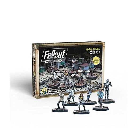 The new Commonwealth wave of miniatures and rules expansion for Fallout: Wasteland Warfare has arrived! The Railroad are the most secretive group active in the Commonwealth. They protect synths and attempt to spirit them away from the Institute, who the Railroad view as nothing more than slavers. Synths, to the Railroad, are the equal of humans and deserve to live freely. Their current leader Desdemona has been a revolution for the Railroad, pushing their operation to new heights, and serving as a beacon of hope for all synths dreaming of freedom. Contents: The Railroad Core set includes the leaders and other major characters from the Railroad faction. Look out for other miniatures sets in the Commonwealth wave!