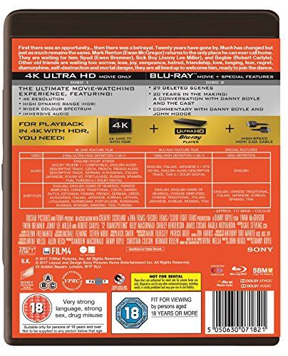 Danny Boyle returns to direct this sequel to the critically acclaimed 1995 film starring Ewan McGregor and Jonny Lee Miller. Following on two decades after the end of 'Trainspotting', the film sees Mark 'Rent Boy' Renton (McGregor) return to Scotland in search of his old friends Simon 'Sick Boy' Williamson (Miller) and Daniel 'Spud' Murphy (Ewan Bremner). As Renton prepares for a great union, he must try to avoid the psychopathic Francis 'Franco' Begbie (Robert Carlyle) who is fresh out of prison and hell-bent on getting revenge on his former friends. The cast also includes Kelly Macdonald as Diane Coulston, Shirley Henderson as Gail Houston and Irvine Welsh as Mikey Forrester.
